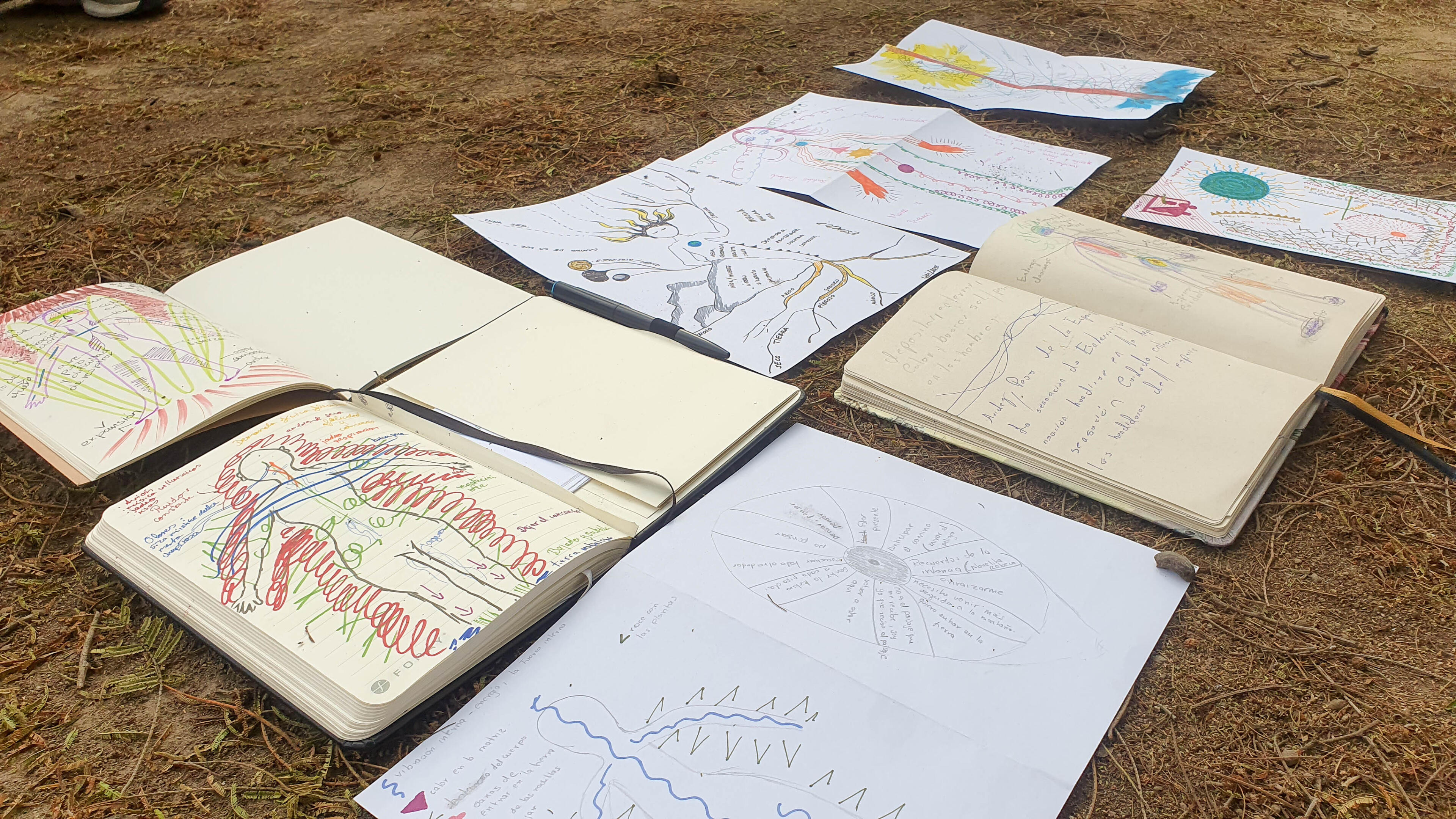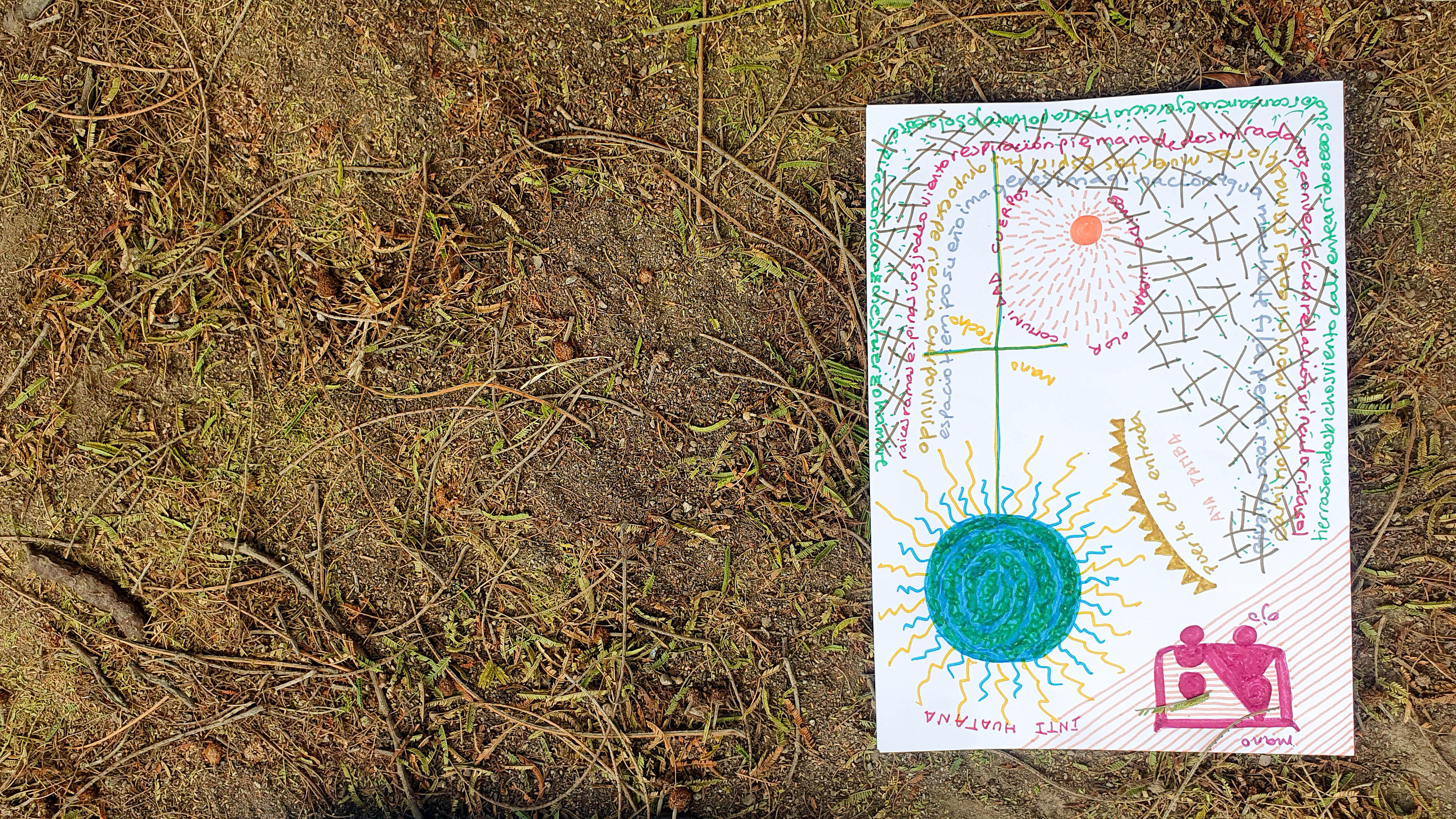 El domingo se trabajó en la elaboración de mapas individuales y colectivos que permitieran traducir la caminata en capas: sonidos cercanos y lejanos, sensaciones corporales, silencios percibidos, memorias evocadas. La cartografía funcionó como un dispositivo de reflexión y análisis, permitiendo identificar patrones, contrastes y desplazamientos de la caminata en el páramo.