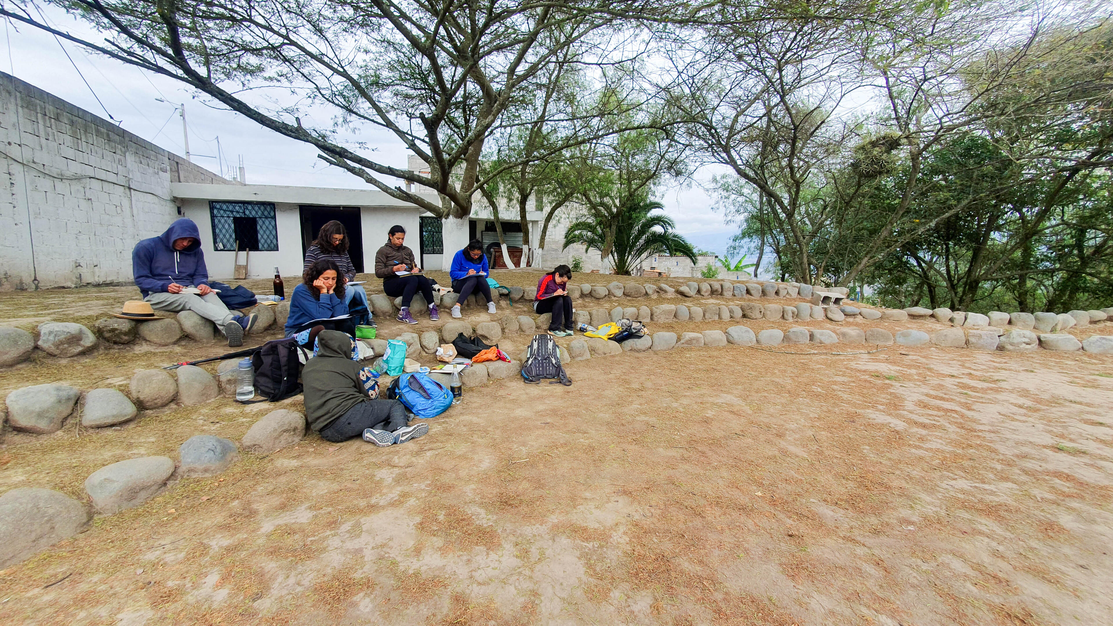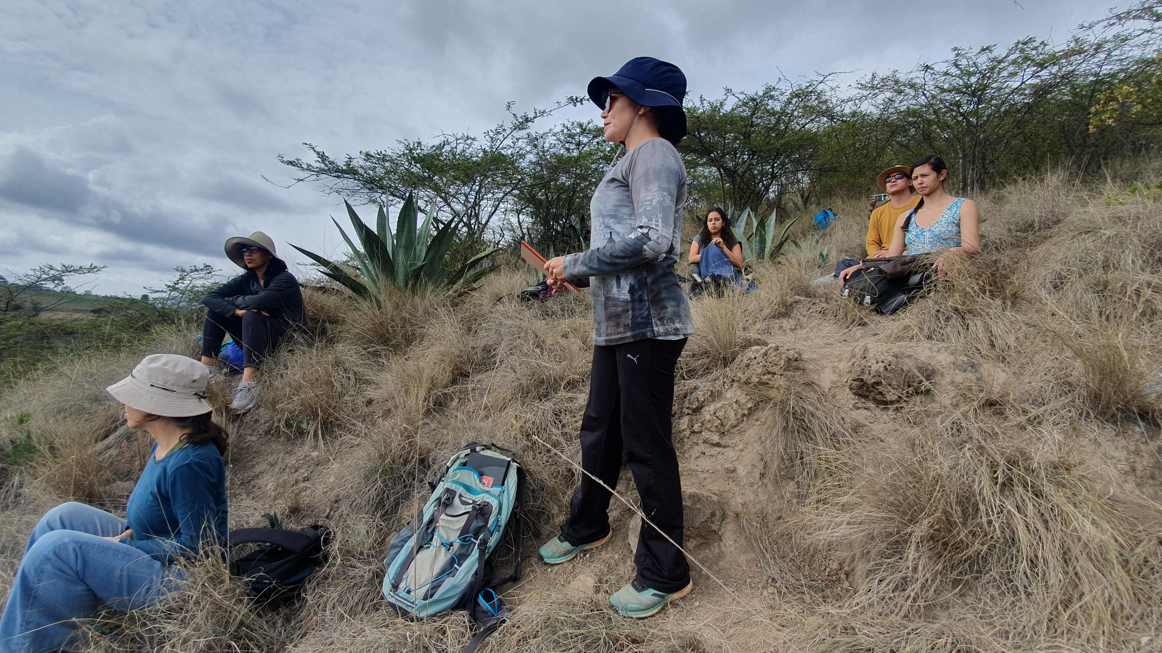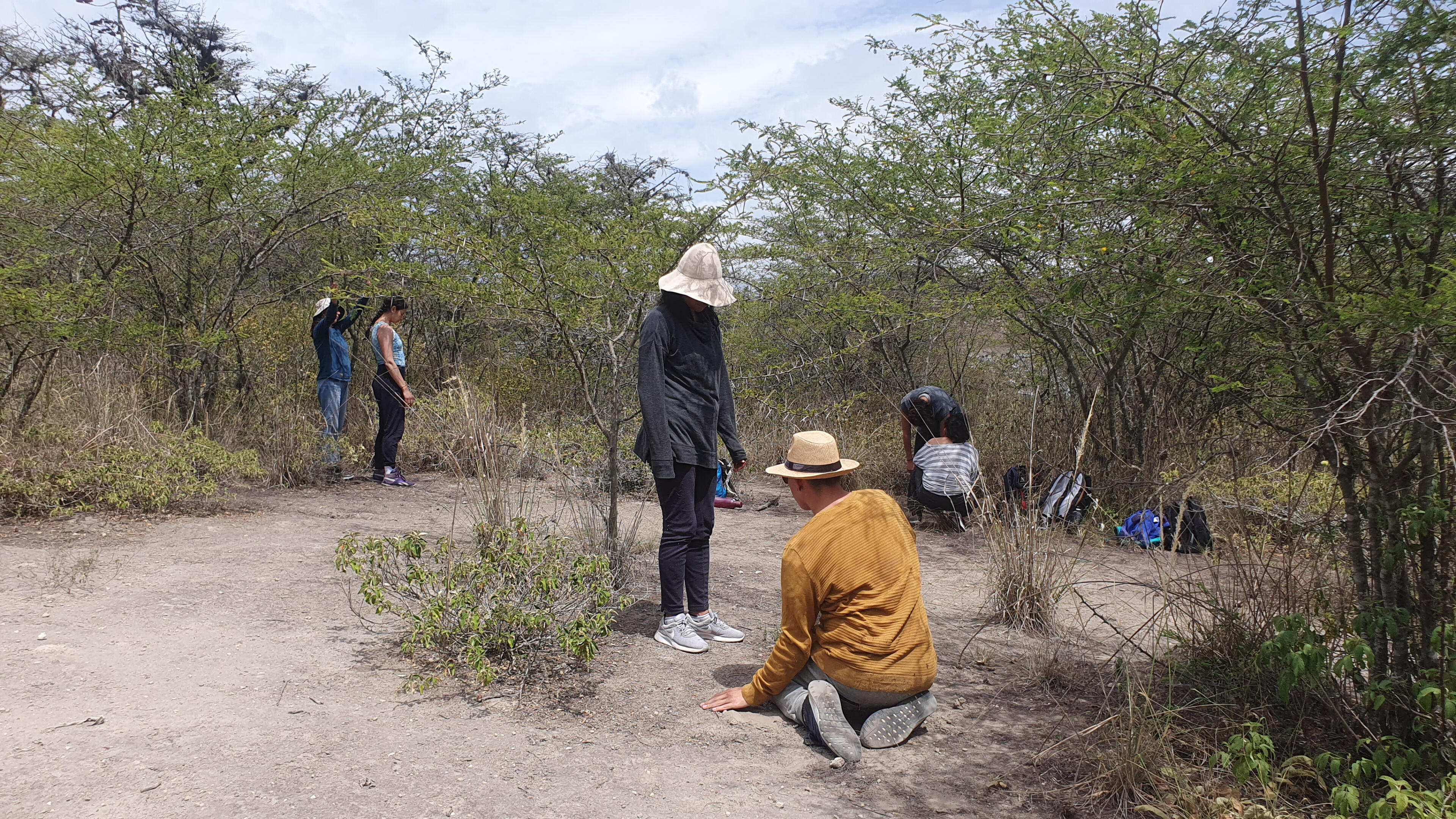 Moving the landscapeA workshop organized by Estefanía Piñeiros and Mercedes Balarezo, an Ecuadorian dance artist and pedagogue based in Helsinki. The workshop took place on Saturday, December 17, 2023, and lasted eight hours. It was held in the Jalumkilla dry forest, located in the northern area of Quito. Jalumkilla is an initiative of the La Capilla commune in Calderón, aimed at protecting and maintaining a 186-hectare dry forest. It is one of the few remaining green spaces in the northern part of the city, crossed by ravines and home to a variety of plant and animal species. The route opened by the community incorporates segments of ancestral chakiñanes.Through walking and a series of creative exercises carried out in the Jalumkilla dry forest, the workshop focused on exploring and generating movement inspired by the performative qualities of the landscape. Participants were primarily dance artists and performers.