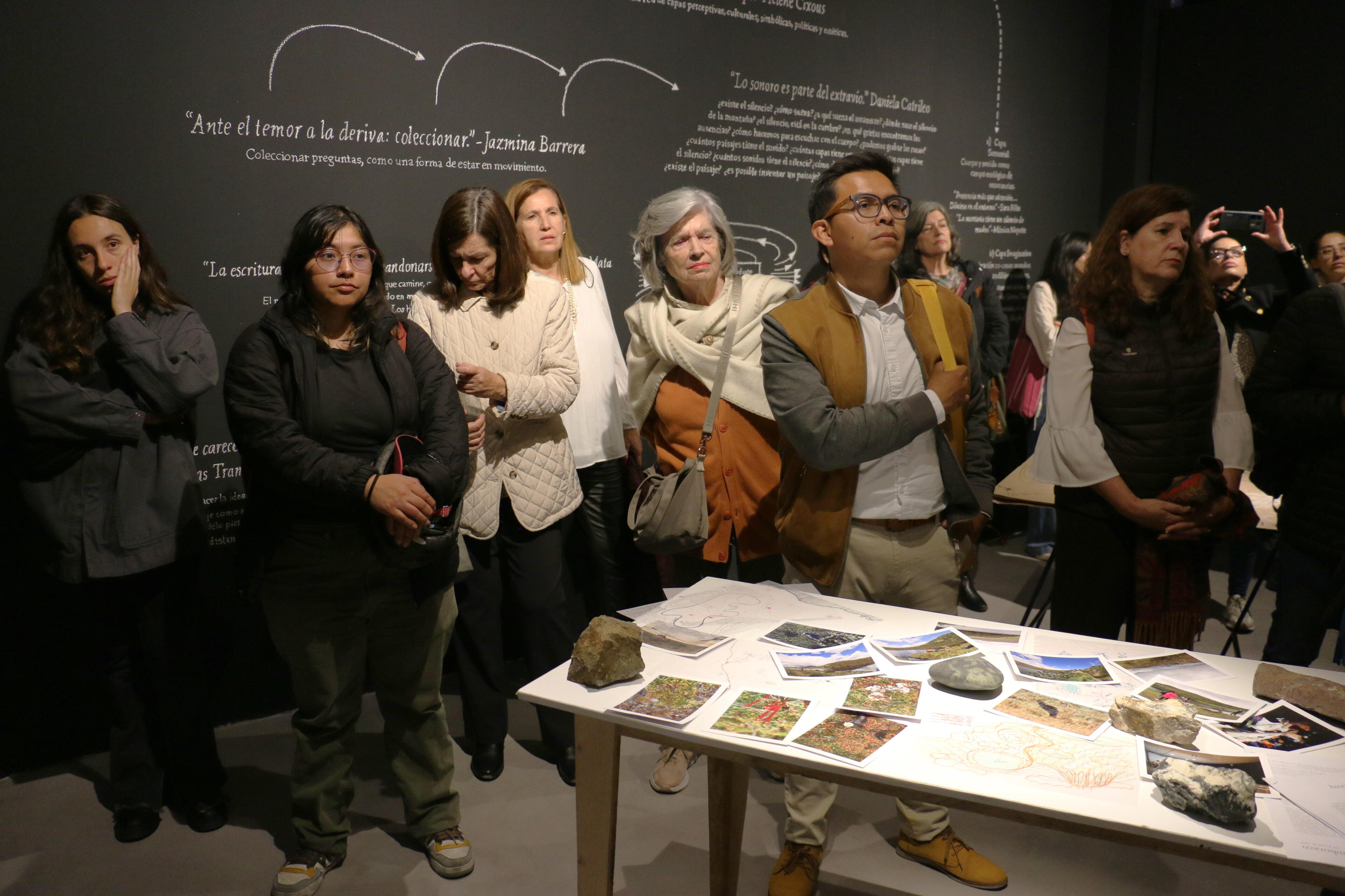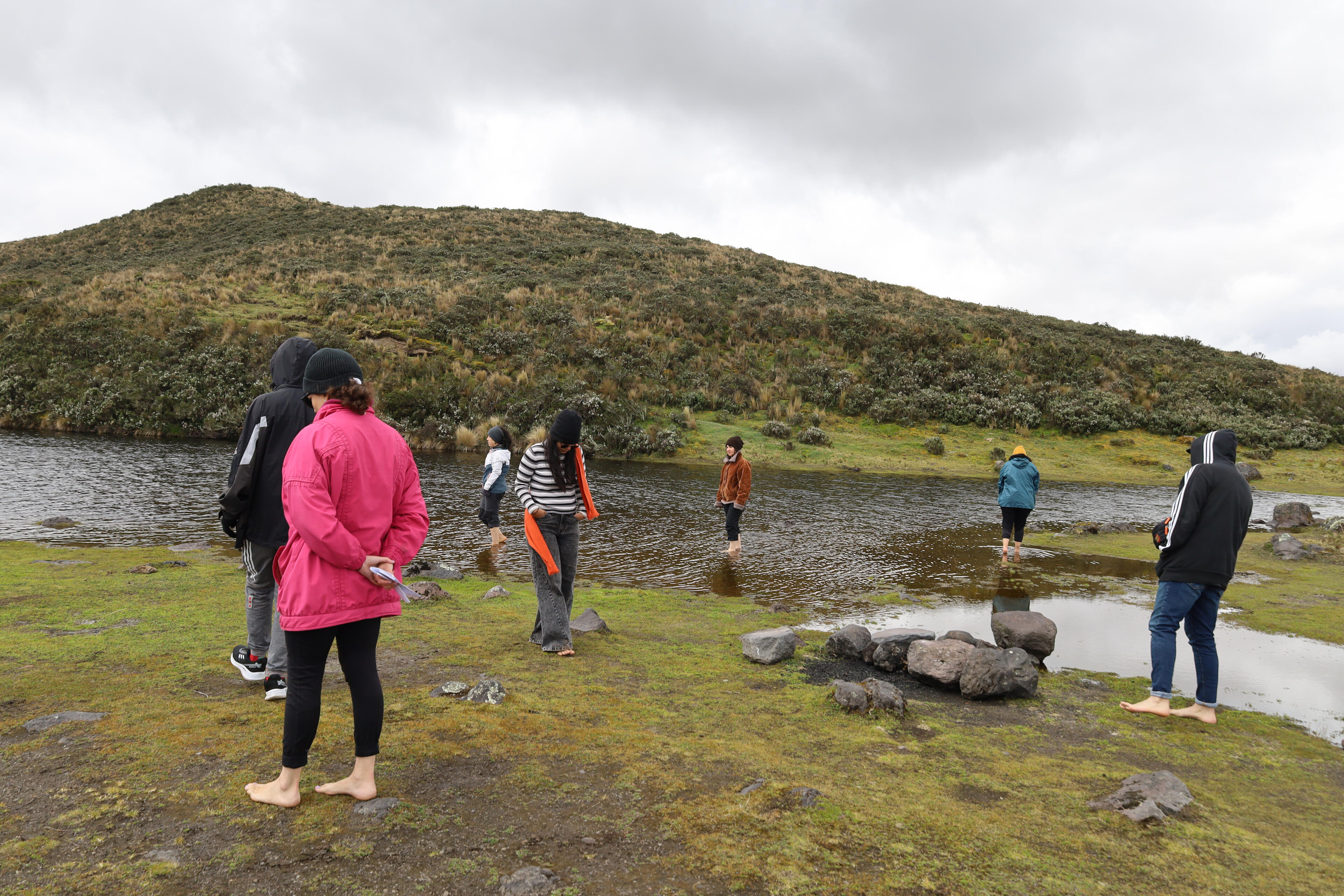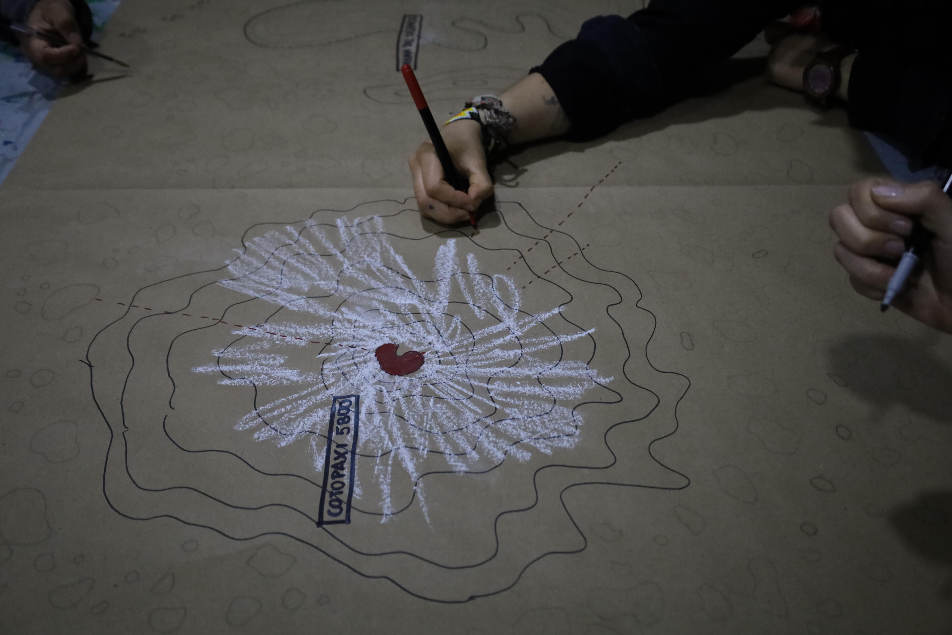 Mutant LandscapesThe workshop Paisajes Mutantes: Laboratory of Geological Listenings and Writings was conceived as a public laboratory to bring new voices into the artistic research that Alegría Acosta and I carried out as part of the Project Room grant at Arte Actual FLACSO, Ecuador. The aim was to use the body as the primary tool to explore the mountain through listening, walking, and writing. The proposal is grounded in the understanding that bodily experience opens a field of perception and relation with the environment that cannot be accessed in other ways. Walking was key, as it allows participants to enter the flow of experiences and practices that emerge as people move through and interact with their surroundings. For this workshop, listening—particularly around the idea of silence on the slopes of Cotopaxi—became the methodological axis that structured the entire experience.The workshop took place over two sessions. On Saturday, November 19, 2025, the nineteen participants walked around Laguna de Santo Domingo for approximately two hours. We carried out listening exercises both in movement and in stillness, combining techniques from acoustic ecology and sound art, such as soundwalks (Westerkamp) and deep listening (Oliveros). We began by attending to the body—its breathing, the friction of clothing, the rhythm of each step—before opening our listening outward toward the mountain: its grasses, lagoon, birds, and wetlands. Participants were invited to imagine what could be heard or seen in the distance: Do I necessarily see what I hear, or hear what I see? This created space for imagining things we hear without seeing, or see without hearing. There was also room for play: interacting with stones, water, grasses, and ground produced sounds that expanded the relationship between body and territory.On Sunday, we worked on creating individual and collective maps that translated the walk into layers: nearby and distant sounds, bodily sensations, perceived silences, and evoked memories. Mapping became a tool for reflection and analysis, allowing participants to identify patterns, contrasts, and shifts experienced during the walk in the páramo.This workshop revealed a sensitive ecology in which the sensorial, the imaginative, and the affective offered another way of understanding natural environments, especially those near snow-capped mountains. Through working with the body and engaging in practices that refine listening and cultivate presence, participants connected more deeply with their surroundings, recognizing the mountain as an agentive being—a vital network that links bodies and presences. This way of inhabiting and moving through natural environments such as the páramo strengthens an alternative understanding of the non-human and a sense of correspondence with the living world.