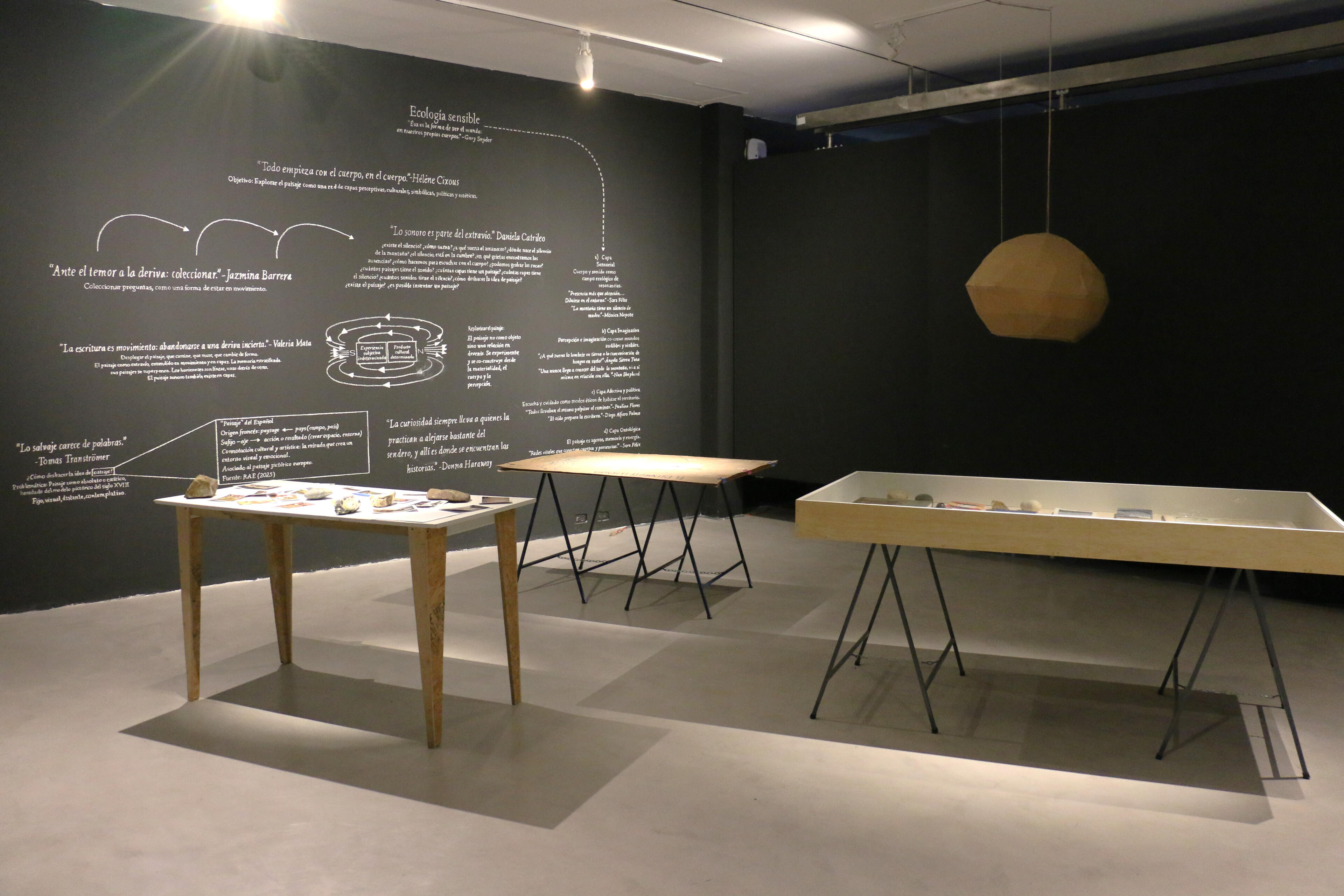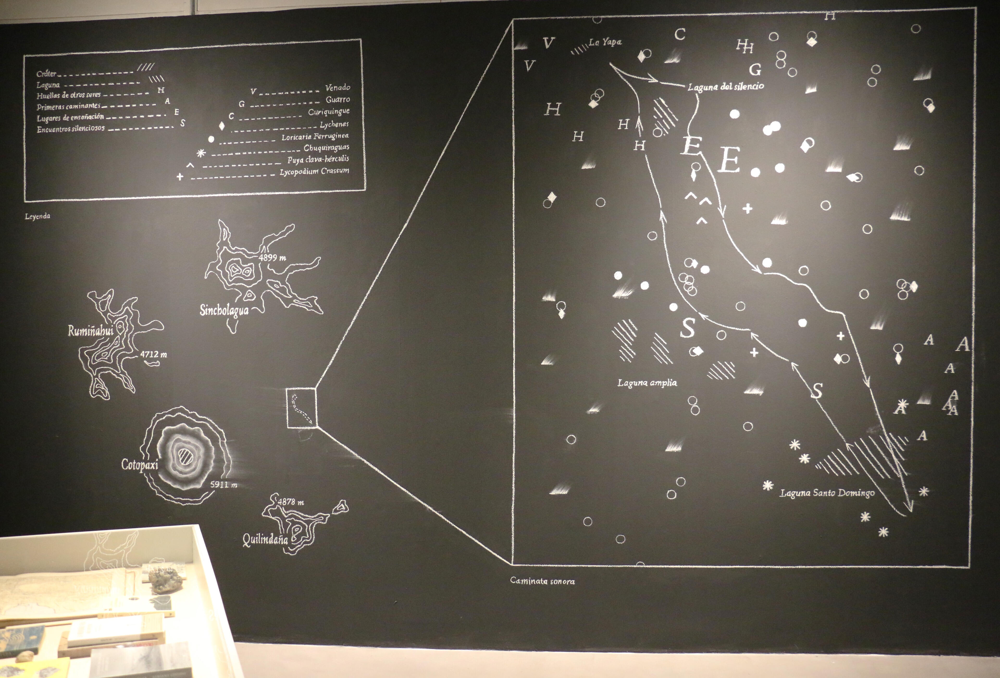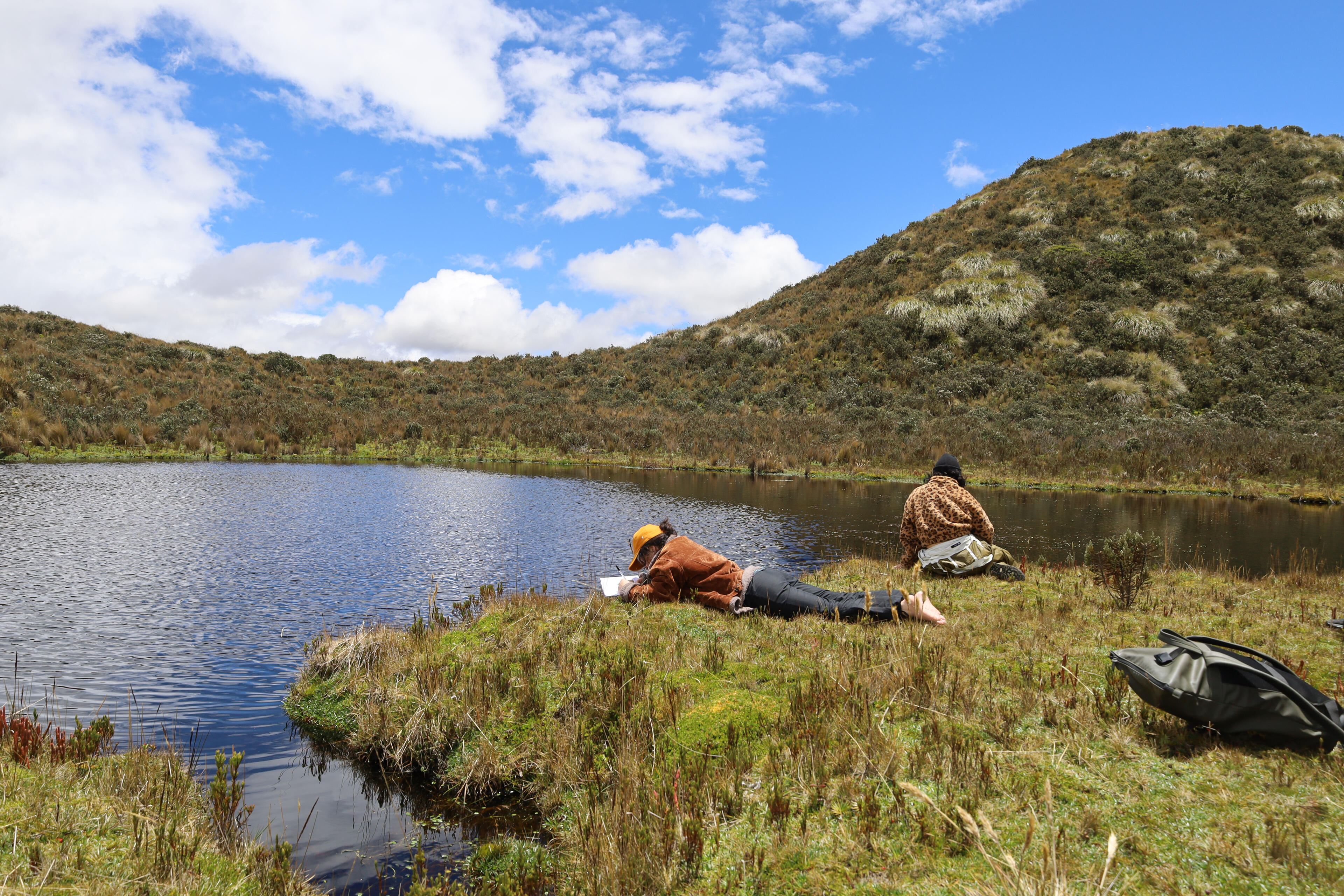 Mutant LandscapesThe workshop Paisajes Mutantes: Laboratory of Geological Listenings and Writings was conceived as a public laboratory to bring new voices into the artistic research that Alegría Acosta and I carried out as part of the Project Room grant at Arte Actual FLACSO, Ecuador. The aim was to use the body as the primary tool to explore the mountain through listening, walking, and writing. The proposal is grounded in the understanding that bodily experience opens a field of perception and relation with the environment that cannot be accessed in other ways. Walking was key, as it allows participants to enter the flow of experiences and practices that emerge as people move through and interact with their surroundings. For this workshop, listening—particularly around the idea of silence on the slopes of Cotopaxi—became the methodological axis that structured the entire experience.The workshop took place over two sessions. On Saturday, November 19, 2025, the nineteen participants walked around Laguna de Santo Domingo for approximately two hours. We carried out listening exercises both in movement and in stillness, combining techniques from acoustic ecology and sound art, such as soundwalks (Westerkamp) and deep listening (Oliveros). We began by attending to the body—its breathing, the friction of clothing, the rhythm of each step—before opening our listening outward toward the mountain: its grasses, lagoon, birds, and wetlands. Participants were invited to imagine what could be heard or seen in the distance: Do I necessarily see what I hear, or hear what I see? This created space for imagining things we hear without seeing, or see without hearing. There was also room for play: interacting with stones, water, grasses, and ground produced sounds that expanded the relationship between body and territory.On Sunday, we worked on creating individual and collective maps that translated the walk into layers: nearby and distant sounds, bodily sensations, perceived silences, and evoked memories. Mapping became a tool for reflection and analysis, allowing participants to identify patterns, contrasts, and shifts experienced during the walk in the páramo.This workshop revealed a sensitive ecology in which the sensorial, the imaginative, and the affective offered another way of understanding natural environments, especially those near snow-capped mountains. Through working with the body and engaging in practices that refine listening and cultivate presence, participants connected more deeply with their surroundings, recognizing the mountain as an agentive being—a vital network that links bodies and presences. This way of inhabiting and moving through natural environments such as the páramo strengthens an alternative understanding of the non-human and a sense of correspondence with the living world.